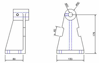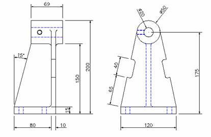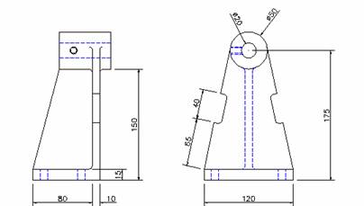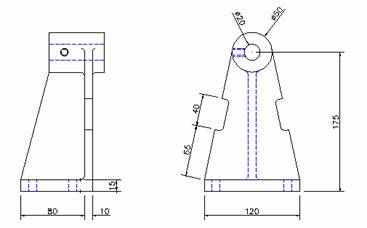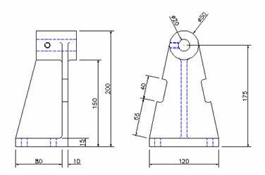 La cererea primei extremit[\i a unui bra\ al unghiului tasta\i coordonatele @90<75. Acest punct va fi plasat de-a lungul nervurii inclinate a piesei. Introduce\i extremitatea celui de-al doilea bra\ al unghiului tast]nd cooordonatele @0,23, determin]nd un punct pe verticala. Seta\i loca\ia arcului ce marcheaz[ cota tip[rind coordonatele 130,170 la urm[torul prompter si introduce\i coordonatele punctului de plasare a textului 130,160. Cota unghiular[ va fi trasat[ ca in figura 12.