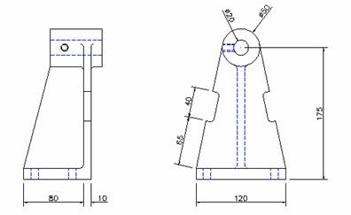 16. Selecta\i optiunea Angular din meniul Dimension. La prima cerere din linia de comanda ap[sa\i tasta "Enter" pentru a putea specifica punctele necesare cotei unghiulare. La prima cerere a punctelor ce definesc unghiul selecta\i punctul in care nervura inclinat[ int]lne=te baza piesei turnate. Dac[ este necesar, urm[ri\i figura 6 pentru a identifica punctele ce trebuiesc selectate.