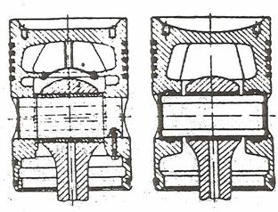 Fig 5 si 6 ilustreaza tipuri de pistoane caracteristice motoarelor navale in doi timpi,cu cap de cruce.