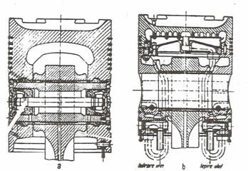 O solutie constructiva deosebita o constitue pistonul cu articulatie sferica si mechanism de rotatie (fig.3).Principalul avantaj il constitue unifomizarea incarcarii termice si a uzurii pistonului,aisgurarea unor conditii de lubrificare constante in timp,precum si consumuri mai reduse de ulei.