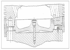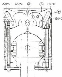 O alta forma constructiva adoptata pentru m.a.c.-urile semirapide,ce utilizeaza H.F.O. este cea din fig. 4.Lipseste articulatia sferica ,dar se constata ca la varianta de piston din doua parti incarcarea termica este mai redusa.
