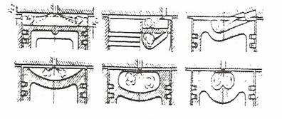 In primul rand,trebuie mentionat faptul ca forma capului pistonului la m.a.c.-uri poate fi:plata,convexa,profilata dupa forma jetului de combustibil (in plan longitudinal) sau contine camera de ardere (fig.8)