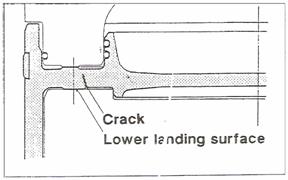 Tot in cazul motoarelor in doi timpi lente,s-a constatat fisurarea mantalei in zona suprafetei de contact cu tija pistonului (fig.9).