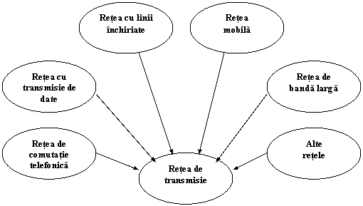 Reteaua de transmisie este compusa din echipament si suport fizic care asigura rutarea circuitelor telefonice si legaturile dedicate.