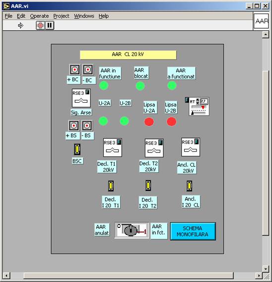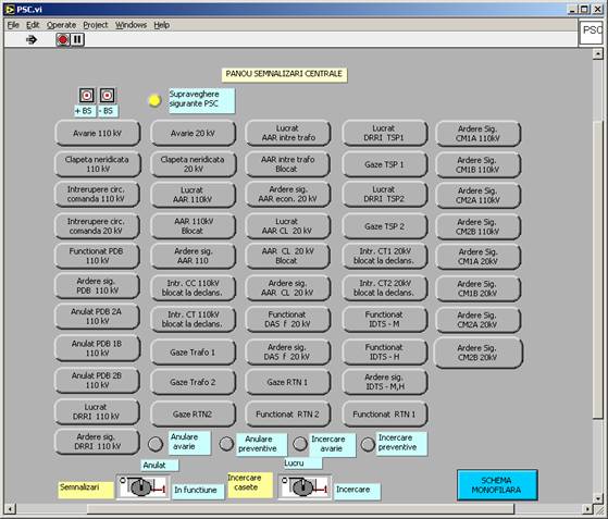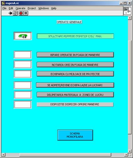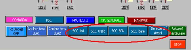 Īn partea de jos a ferestrei īn care este reprezentata schema monofilara este afisat meniul principal (primul rānd de butoane) care permite accesul la urmatoarele informatii:
