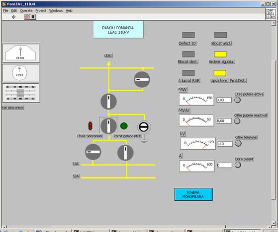 Mai jos este prezentat panoul de comanda pentru LEA1 110kV: