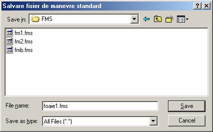 pentru transformarea acestei foi de manevre intr-o foaie de manevre standard se apasa butonul FMS din fereastra "foaiemA" care are ca efect deschiderea ferestrei urmatoare: