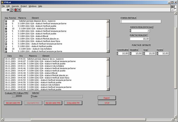 Se apasa butonul INCARCARE FM prin care se īncarca foaia de manevre executata de elev dupa ce a fost salvata īn prealabil (din directorul FOAIE MANEVRE, fisierul foaie1_elev.fm) . Se apasa butonul INCARCARE FMS prin care se īncarca foaia de manevre standard (din directorul FMS fisierul foaie1.fms) . Atāt FMS cāt si FM apar afisate īn casetele din partea stānga a imaginii. Pentru evaluare se apasa butonul EVALUARE FM care are ca efect aparitia īn partea dreapta a ferestrei a rezultatelor evaluarii: durata de executie a foii de manevre, punctajul realizat, respectiv punctajele obtinute pentru fiecare criteriu de evaluare īn parte. Pentru afisarea raportului de evaluare se apasa butonul RAPORT care determina aparitia ferestrei de mai jos: Acest raport de evaluare poate fi listat la imprimanta prin apasarea butonului PRINT; fisierul corespunzator se va salva automat īn subdirectorul Rapoarte (ex. Raport.txt) . Tot īn acest subdirector se afla salvata īn format "txt" si foaia de manevre executata de elev pentru care s-a facut raportul de evaluare respectiv. Precizam ca evaluarea activitatii pe simulator se face de catre personalul tehnic de specialitate care sa cunoasca foarte bine din punct de vedere tehnologic activitatea de exploatare din statiile electrice respectiv regulamentul de manevre si care poate pregati cadrul de desfasurare al evaluarii (crearea de FMS-uri). Simulatorul monopost este īn principal un instrument destinat antrenamentului, permitānd īnsa si evaluarea īn conditiile mai sus amintite. Document InfoAccesari: 6271 Apreciat: Comenteaza documentul:Nu esti inregistratTrebuie sa fii utilizator inregistrat pentru a putea comenta Creaza cont nou A fost util?Daca documentul a fost util si crezi ca meritasa adaugi un link catre el la tine in site in pagina web a site-ului tau.