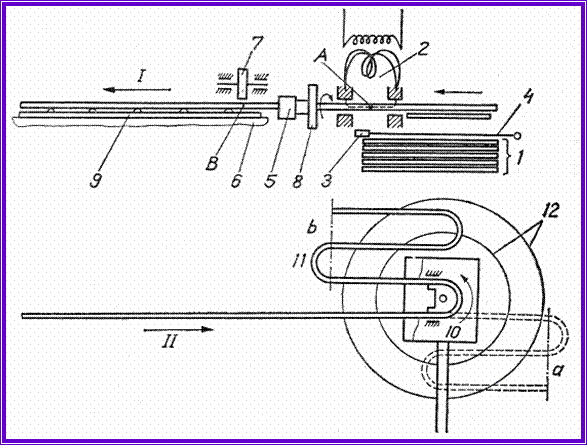 serpentina se poate scoate de pe tamburul 2 în urma rotirii pârghiei-distantier 5, ce sustine bucsa 4;