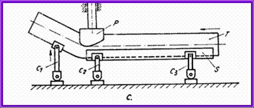 avansul tevii, simultan cu ridicarea cricului C1 si coborârea cricurilor C2 si C3 în pozitia initiala - c;