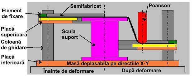 Metoda permite deformarea fara placa activa, folosind doar o simpla scula suport pozitionata sub semifabricat (fig. 3).