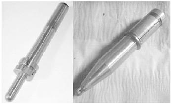 Dimensiunea poansonului (fig. 6) defineste raza minima posibil a fi obtinuta la piese, care este jumatate din diametrul acestuia. Diametrul minim al poansonului este de 6 mm. Diametrul poansonului afecteaza calitatea suprafetei în sensul ca, la un diametru mare al acestuia, rezulta o suprafata neteda iar urmele lasate pe suprafata prelucrata sunt mici.