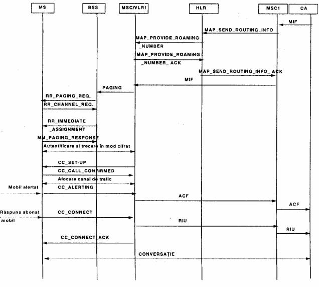 - raspuns abonat mobil (CC_CONNECT īntre MS si MSC; MSC transmite catre MSC1 acest mesaj prin mesajul FIU).