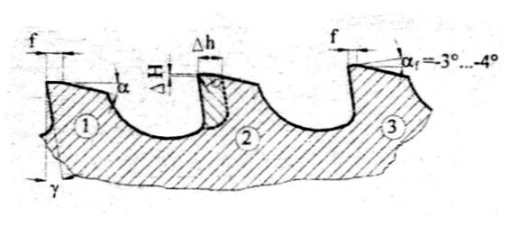 Frezele cu dinti elicoidali se ascut pe fata de degajare cu ajutorul partii conice a unei pietre abrazive tir taler.