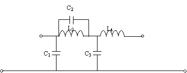 4.4 Efectuam trecerea la schema filtru T.B. Cauer-Zolatoriov. Pentru aceasta fiecareinductivitate Lk a F.P.T.J. o substituim cu conexiunea serie a acestei inductivitati si capacitatii C1k,valoarea carei se alege din conditia de rezonanta la frecventa f0.Fiecare capacitate Ck Af.p.t.j. o substituim prin conturul oscilant paralel ,alcatuit din aceasta capacitate si inductivitatea L1k, asigurind rezonanta la f0,adica