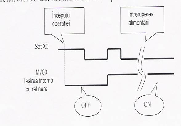 Instructiune FUN45 poate fi combinata cu iesirile interne ale memoriei de retinere (M) ca sa provoace functionarea unu releu de pastrare.In figura 11 din anexa,starea lui M700 la intreruperea alimentarii ,este pastrata pana la revenirea alimentarii deoarece M700 este o iesire interna cu retinere.