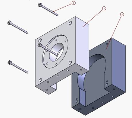 1 – partea superioara, 2 – partea inferioara, 3 - șuruburi de incapsulare