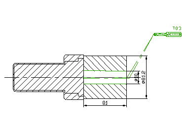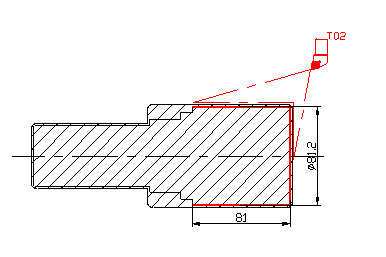 N60 G36XZ T01 M06 M03 N70 G00 G27 G90 G96 X0 Z2 S1111 F0.411 M08 N80 G01 Z0 N90 X83.3 X81.2 N100 Z-81 N110 M09 |