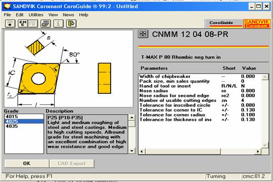 Sistem de prindere: T MAX P; caract. placuta : CNMM 1204 08-PR 4025;cod suport SCLEN 08 M12 ISO 5608 - 1995.