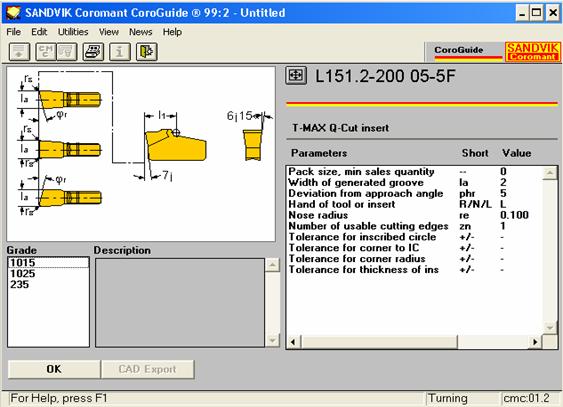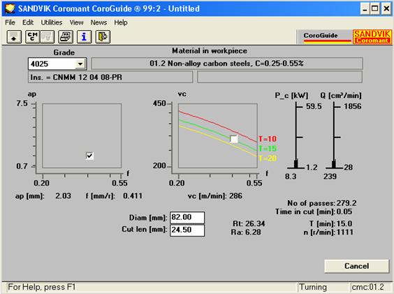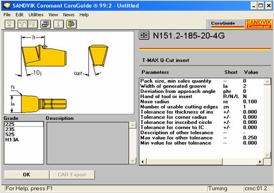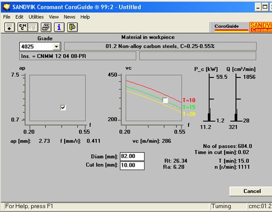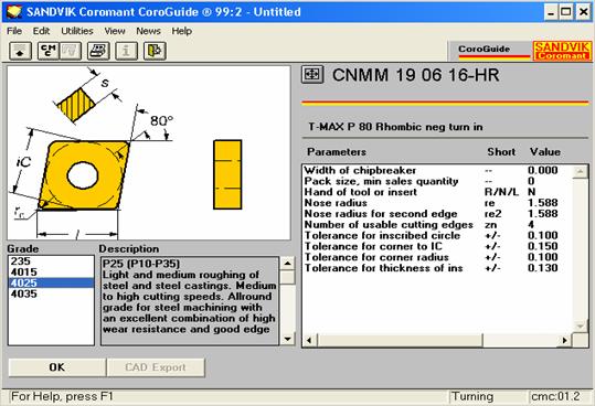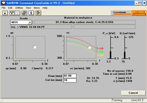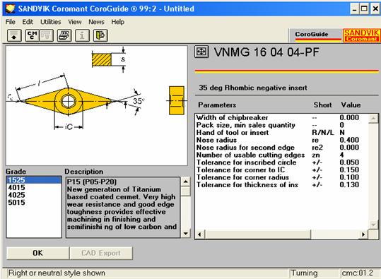 Sistem de prindere: T MAX P; caract. placuta : VNMG 16 04 08 PF 1525; cod suport SCLEN 08 M12 ISO 5608 - 1995.