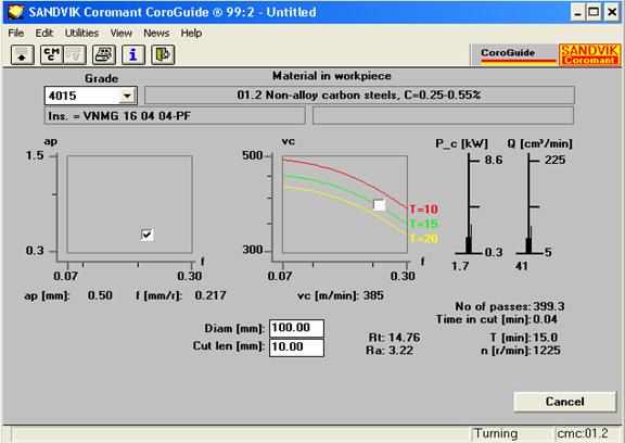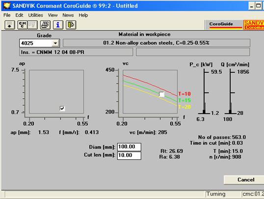-gama de avansuri: 0.10; 0.13; 0.19; 0.27; 0.38; 0.53; 0.75; 1.06; 1.5