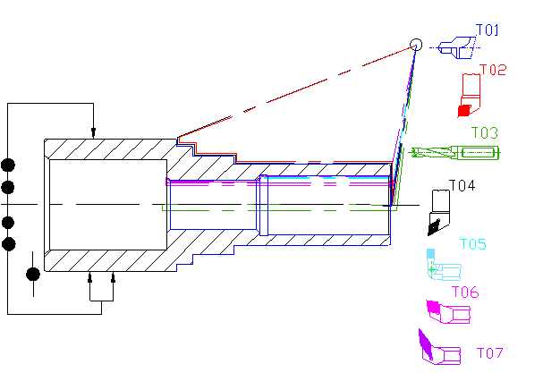 N120 G36 XZ N130 G00 G27 G96 X0 Z2 S1977 F0.191 T03 M06 M03 N140 G01 Z0 N150 G01 Z-81 N160 G00 Z135 |