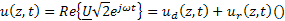 Valorile instantanee ale tensiunii si curentului in linie se obtin luand partea reala a curentului si tensiunii instantanee intr-un punct pe linie: