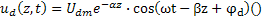 amplitudinea semnalului scade din cauza pierderilor in linie, dupa legea
