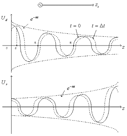 ). In linie vor exista simultan atat unde progresive cat si unde stationare. Ca rezultat al insumarii lor pe linie apar punctele in care tensiunea si curentul sunt maxime si minime. (fig. a)