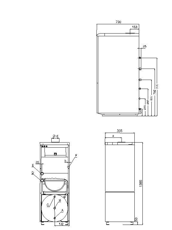 F - intrare gaz ¾"