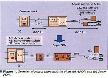 Componentele optice deja dezvoltate la nivelul retelelor de baza sunt evaluate pentru a putea obtine un debit, o banda si o multiplexare mai buna. Am realizat un prototip numit SuperPON, care satisface toate cerintele si care va fi operational in primul sfert al anului 2000. Arhitectura SuperPON-ului este descrisa in urmatoarele paragrafe, fiind explicate si principalele provocari tehnice. Avantajele financiare si posibile scenarii pentru viitor sunt deasemeni atent analizate. Este prezentat in final un rezumat asupra prototipului realizat si posibile planuri pentru viitor.