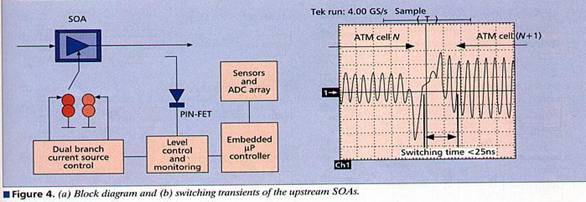 Amplificatoarele optice de tip semiconductor(SOA-semiconductors optical amplifiers), care in principiu constau dintr-o stuctura laser fara oglinzi, ofera avantajul de a fi conectate sau nu intr-un interval de ordinul nanosecundelor[5]. In prezent acestea sunt folosite in principal in dispozitivele de comutare optice. Orisicum, in aplicatiile SuperPON, SOA trebuie sa suporte deasemeni un castig suficient de mare care cere controlul unui curent de comanda destul de ridicat de ordinul a 100 mA.