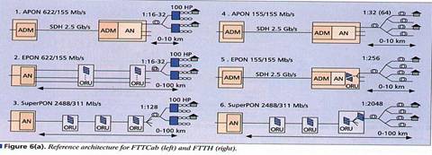 Astazi sunt dezvoltate primele retele optice de acces de banda larga. In 1998 ITU (International Telecommunication Union) a standardizat sistemul de transport pe o retea APON in cadrul G.983.1. Consortiul FSAN (Full Service Access Network) serviciu de acces complet intr-o retea) a indicat APON ca fiind cea mai buna arhitectura pentru dezvoltarea FITL (fiber in the loop) de banda larga. Principalele caracteristici ale sistemului sunt reprezentate in figura 1.a.