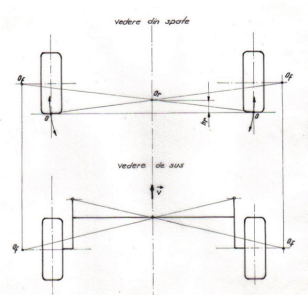 daca roata este nemotoare, rularea ei are loc sub influenta unei forte de impingere Fl egala cu rezistenta de rulare a rotii si aplicata prin pivot, care da nastere unui moment M = R×l cu tendinta de deschidere a rotii => rotile nemotoare au o convergenta constructiva;