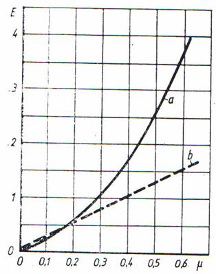 Caracteristica de stabilitate a sabotului reprezinta variatia coeficientului de eficacitate al sabotului E in functie de coeficientul de frecare μ, adica: