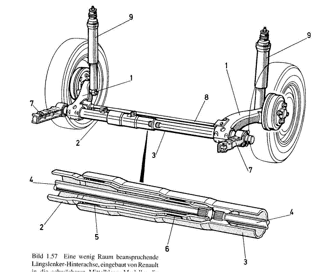 Fig.2.9.Sistem RENAULT de montare si de ghidare a puntii motoare spate cu doua perne de aer