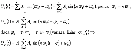 b. Distorsiuni de faza: apar ca urmare a defazajelor introduse de amplificator pentru diferite componente din spectrul semnalului de intrare. Ca urmare a acestui fapt, prin insumarea acestor componente la iesire nu se mai obtine forma semnalului de la intrare.