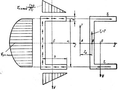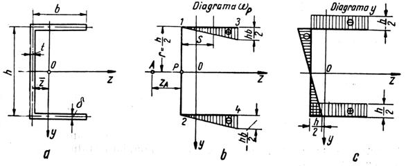 Centrul de încovoiere se afla pe axa Oz, la distanta data de formula urmatoare: