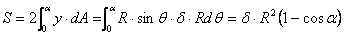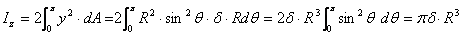 Alegând un element de arie dA = · R · d , a carui pozitie este data de unghiul , respectiv a carui ordonata este y = R sin , se calculeaza momentul de inertie al întregii suprafete.