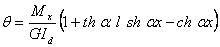 Din relatia (1) se observa ca M este maxim în încastrare, la x = 0, unde sh x = 0 si ch x = 1