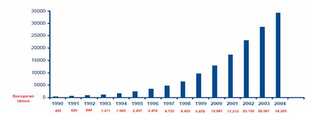 Pe plan mondial, evolutia promovarii industriale, īnceputa practic īn 1983-1985, este extrem de īncurajatoare, majoritatea tarilor industrializate avānd preocupari notabile. Īn figura 1.1 sunt prezentate realizarile # 828c28i 5;arilor din Uniunea Europeana īn ultimul deceniu.