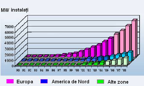 Fig, 1.2 Evolutia capacitatii surselor de energie eoliana in lume