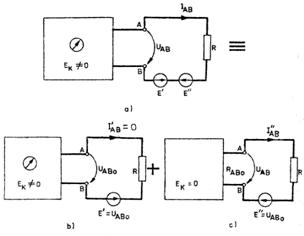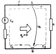 În acest caz (este vorba de ecuatia laturii receptoare) sensul t.e.m. este inversat (tensiune contraelectromotoare), conform ecuatiei: