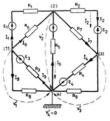 a. caracterizarea topologica a circuitului/retelei, respectiv stabilirea numarului de laturi (L) , noduri independente (N) si ochiuri fundamentale (0 = L - N+1);