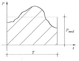 unde P(t) este puterea activa absorbita, iar T - intervalul de timp de observatie (24 sau 8760 h). Ea este reprezentata de aria suprafetei cuprinse între curba de sarcina si axa timpului ( fig.4 ).