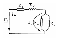 Caderea de tensiune pe impedanta R1 + jXs , constituita de parametri īnfasurarii primare, fig. 3.23, este nesemnificativa īn raport cu tensiunea electromotoare Ue ; aceasta impedanta are valorii nesemnificative īn raport cu impedanta ramurii transversale a schemei echivalente, formata din Rm īn paralel cu Xm . Īn aceste conditii,