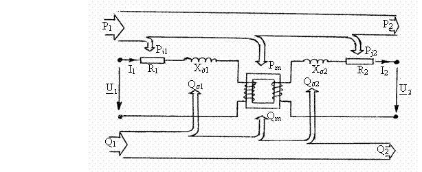 Aceste doua relatii caracterizeaza bilantul puterilor activa si reactiva īn transformator. Expresia grafica a acestui bilant este īnfatisata īn figura 3.25.