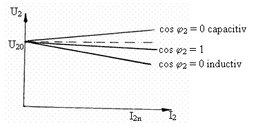 b) Caracteristica externa exprima dependenta tensiunii secundare U2 īn functie de curentul I2 si de factorul de putere al sarcinii cos j īn conditiile alimentarii nominale U1n , fn. Fie variatia relativa a tensiunii secundare: