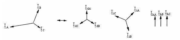 Prin aplicarea legii circuitului magnetic, la care se adauga relatia IA + IB + IC = 0, rezulta: