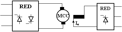 MCC este alimentat de la un redresor bidirectional (doua redresoare comandate (masina functioneaza ca motor si ca frana in cele patru cadrane)